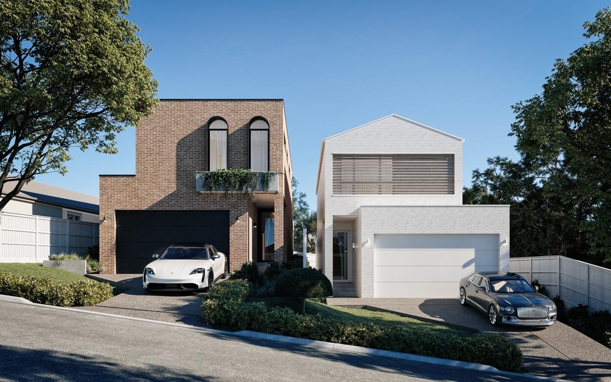 Anchored by timeless brick and render façades, the homes blend seamlessly into their natural surroundings, creating an elegant and enduring streetscape presence.